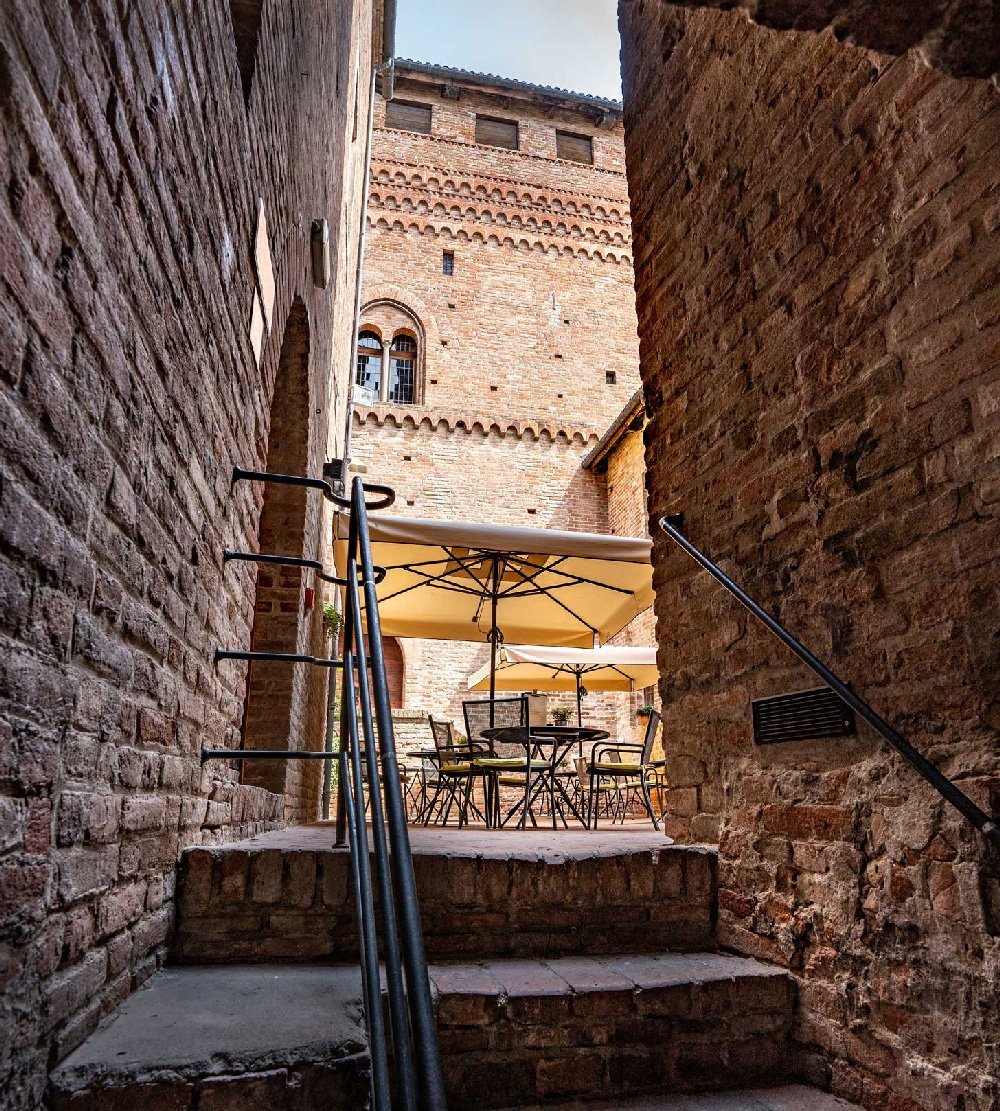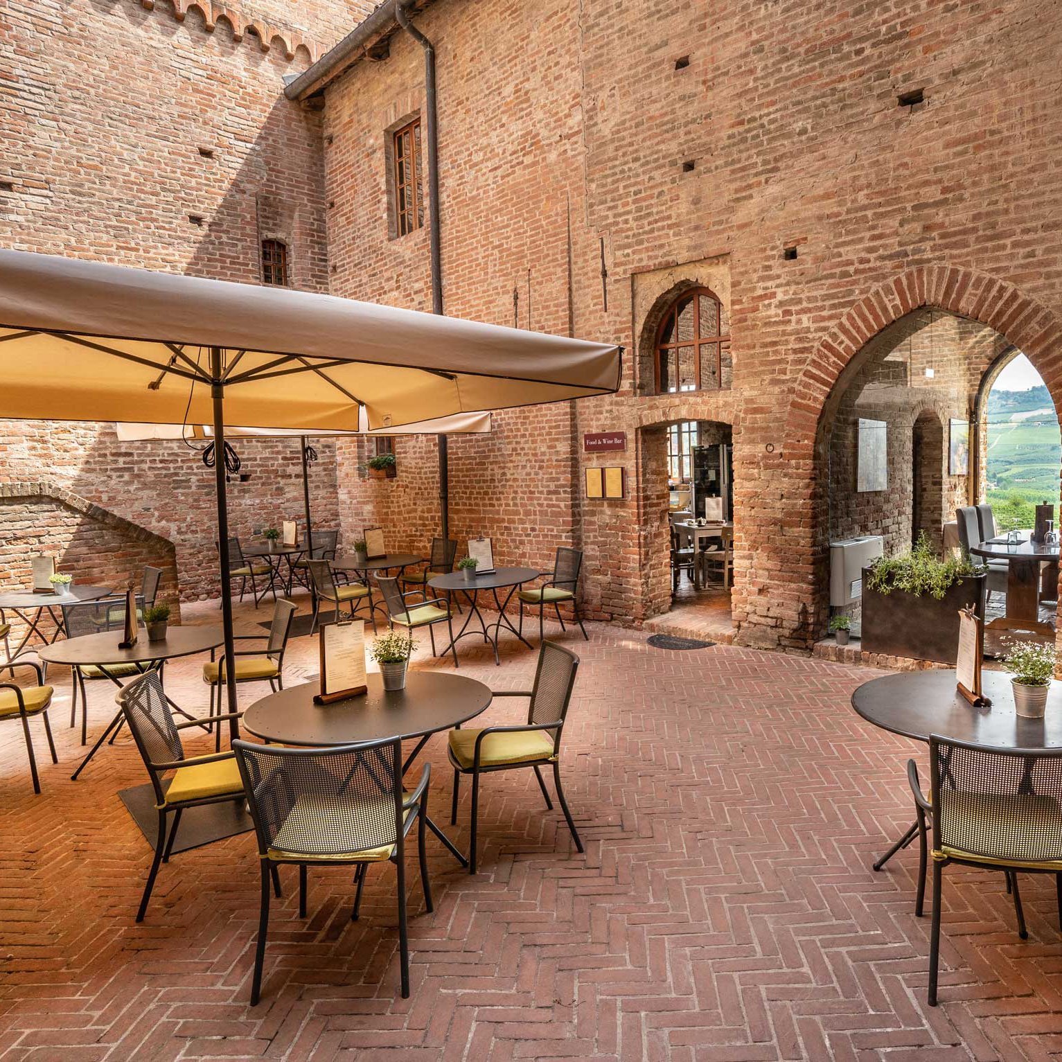 Nell’ambientazione medievaleggiante del locale, nelle sale che ospitarono il Conte Cavour, con una vista straordinaria sulle colline di Langa, la maestosità del luogo si compenetra con l’eccellenza dell’alta cucina, per un’esperienza sensoriale indimenticabile.